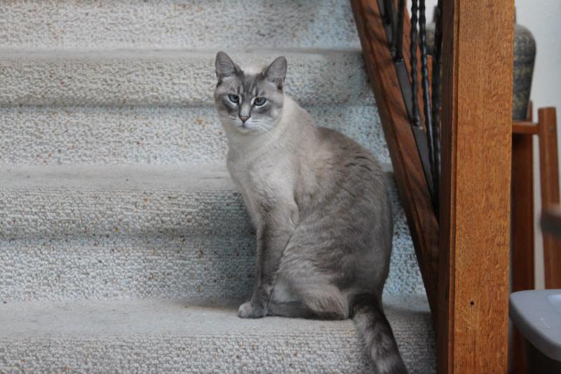 Teetonka - Lynx Point Siamese with very blue, crossed eyes.